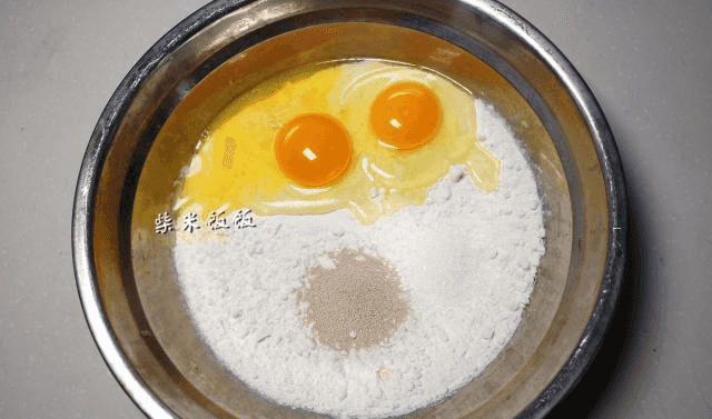 ---【具体制作步骤】---1,把面粉和玉米面粉倒入盆中,打入两个鸡蛋,再加入3克酵母,可以再加入1小勺白糖增加无纺布面粉袋生产电话/微信:15838231350酵母的活性。(这里加入鸡蛋和面,可以使做出的饼更加蓬松香软)