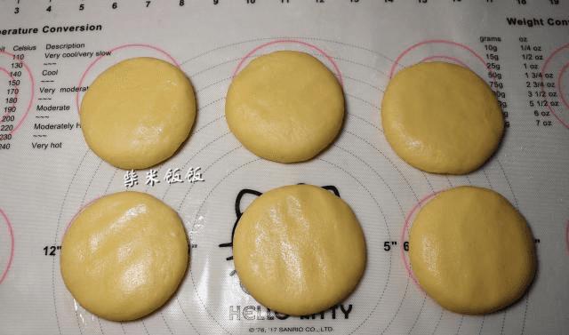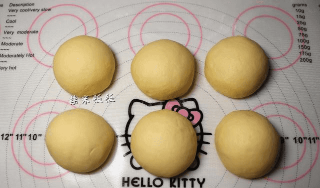 3,面团醒发好了,分成6个大小均匀的小面团,再分别揉光滑并滚圆。