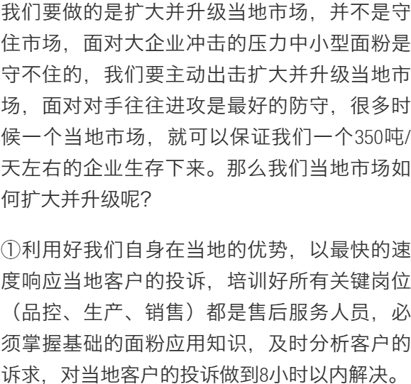 对于当地市场的拓展和升级,存在一个必要性,而且非常适用于北方面食为主的地区,如果是南方面粉企业,这一点基本可以忽略。