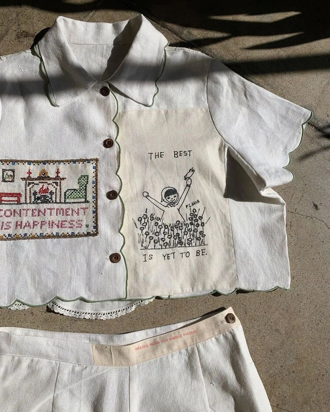 店主Crystal介绍说,“这是源自经济大萧条时期的传统,当时由于面料短缺,女性们用面粉袋制作服装。这是充分利用现有资源的象征,同时这些服装非常别致。”