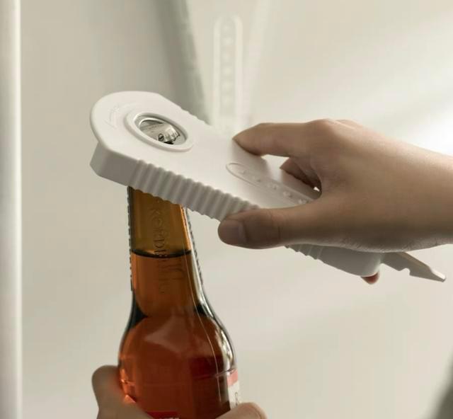 从冰箱里取出的水果罐头、啤酒洒、饮料和可乐瓶可以立即打开。打开后,贴在冰箱上。一套姿势可以自由摆放,不能丢失。