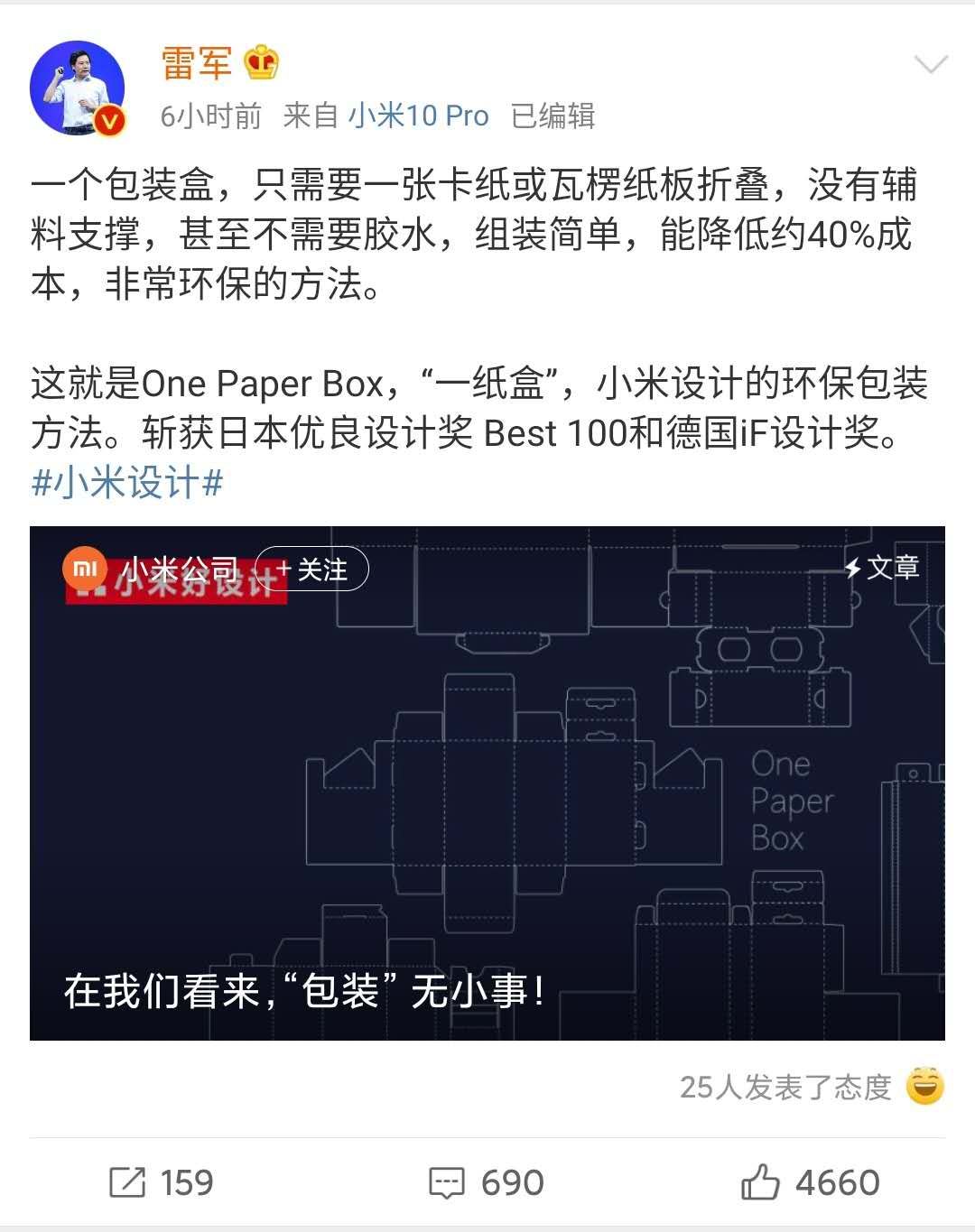 劳模雷军有多重视产品包装的细节,从他另一则微博中就可以看出来。小米手环推出前,包装设计师被他逼着改了好几版,据说设计师都快被逼疯了。小米对包装的重视程度可见一斑!事实上,当年小米手机问世前,就在包装方面下了一番功夫,听说当时产品研发负责人考察了上百家包装厂,才选择了一家设计能力不错的公司作为合作伙伴,很多包装老板至今仍对没吃到小米耿耿于怀。