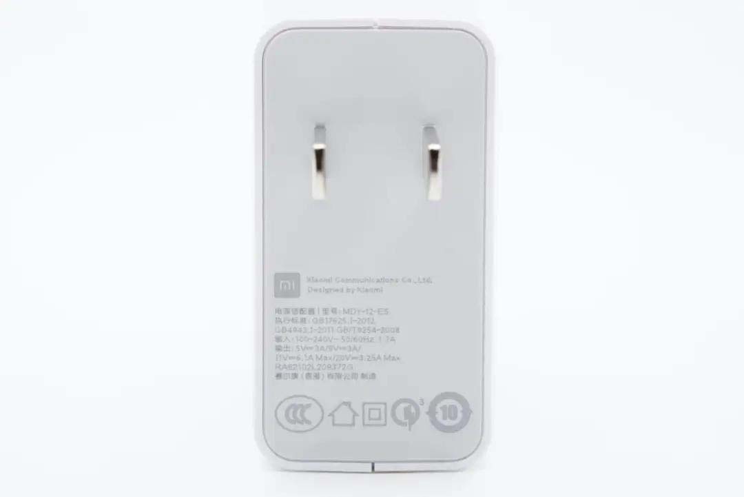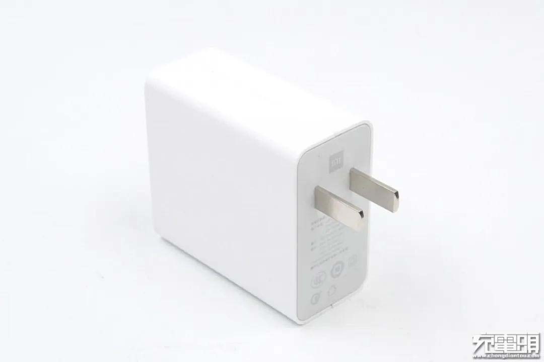小米9 Pro手机标配的是45W魔改充电器,机身通体白色,外壳采用亮面烤漆处理工艺,光滑洁白;侧面边缘为弧面过度,上手体验好;输出顶面进行磨砂处理,并配有一个USB-A接口,白色舌片。
