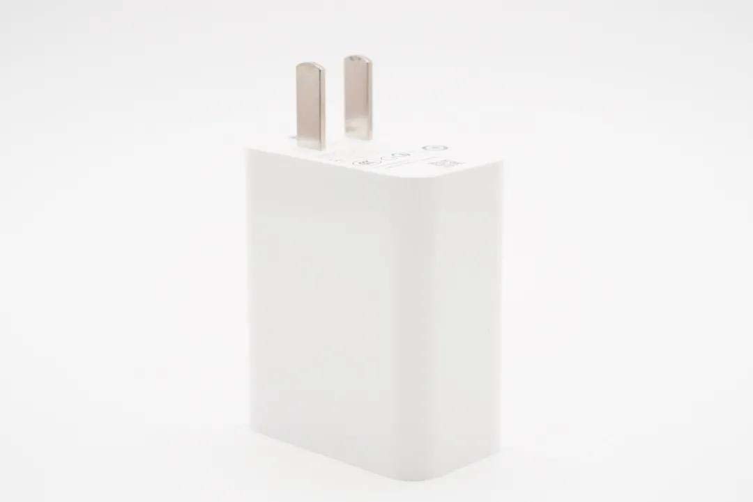红米K30 Pro手机标配的是33W魔改充电器,采用PC阻燃材质白色外壳,表面钢琴烤漆处理,腰身各面之间弧面过渡,机身上没有任何LOGO或是标识,整体洁白光滑,外观设计简洁。
