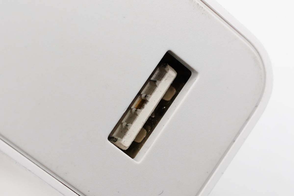 小米45W魔改充电器USB-A口采用白色舌片,前端有特殊触点。