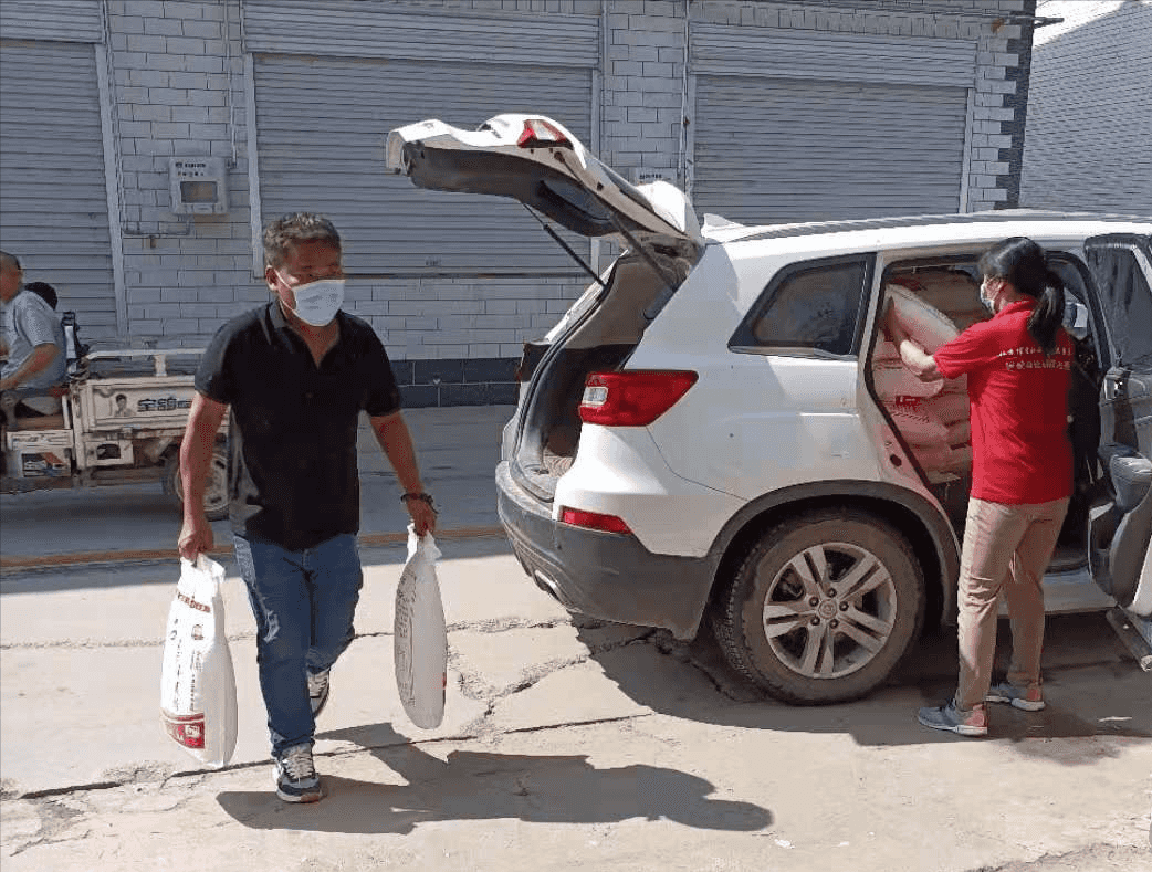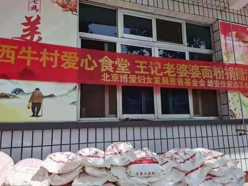 8月21日,河北雄安佳爱志愿服务队志愿者一行十多位,代表北京博爱妇女发展慈善基金会爱心企业“王记老婆婆”石磨面粉厂,将价值七千多元的石磨面粉交到了容城县西牛村“爱心食堂”志愿服务基地。