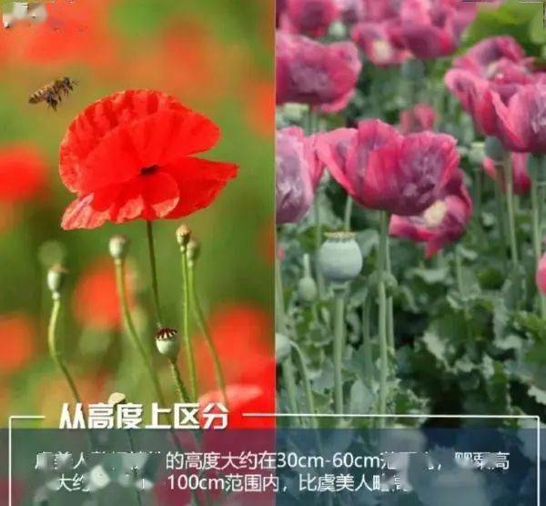罂粟花高度大约在30~100cm范围内,比虞美人略高,整体比较壮实。