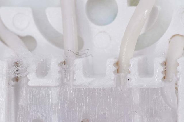 撬开接线盒外壳,接线盒外壳采用锯齿形状固定发热丝,内部发热丝与导线连接处注胶密封。