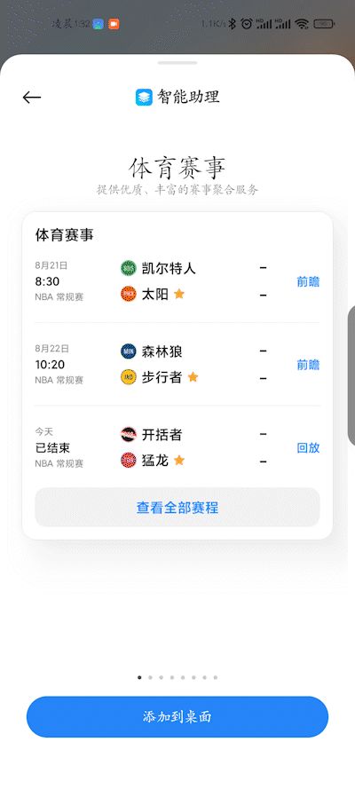 点击下方的“添加到桌面”,这一小部件就会以卡片的形式被添加到桌面,都是圆角化矩形块的设计,而且被添加到桌面还会有动画效果,就像下图这样。