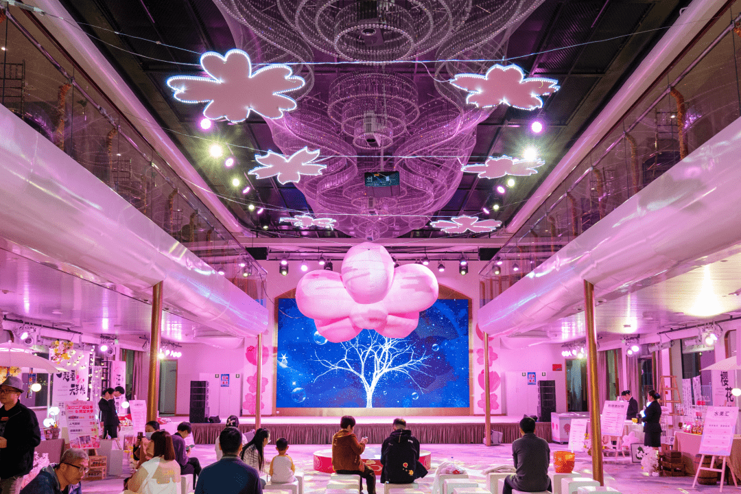 在水上樱花节期间,游轮每层都设计了不同主题的樱花元素,打造船在江上行,如沐樱花雨的独特体验。