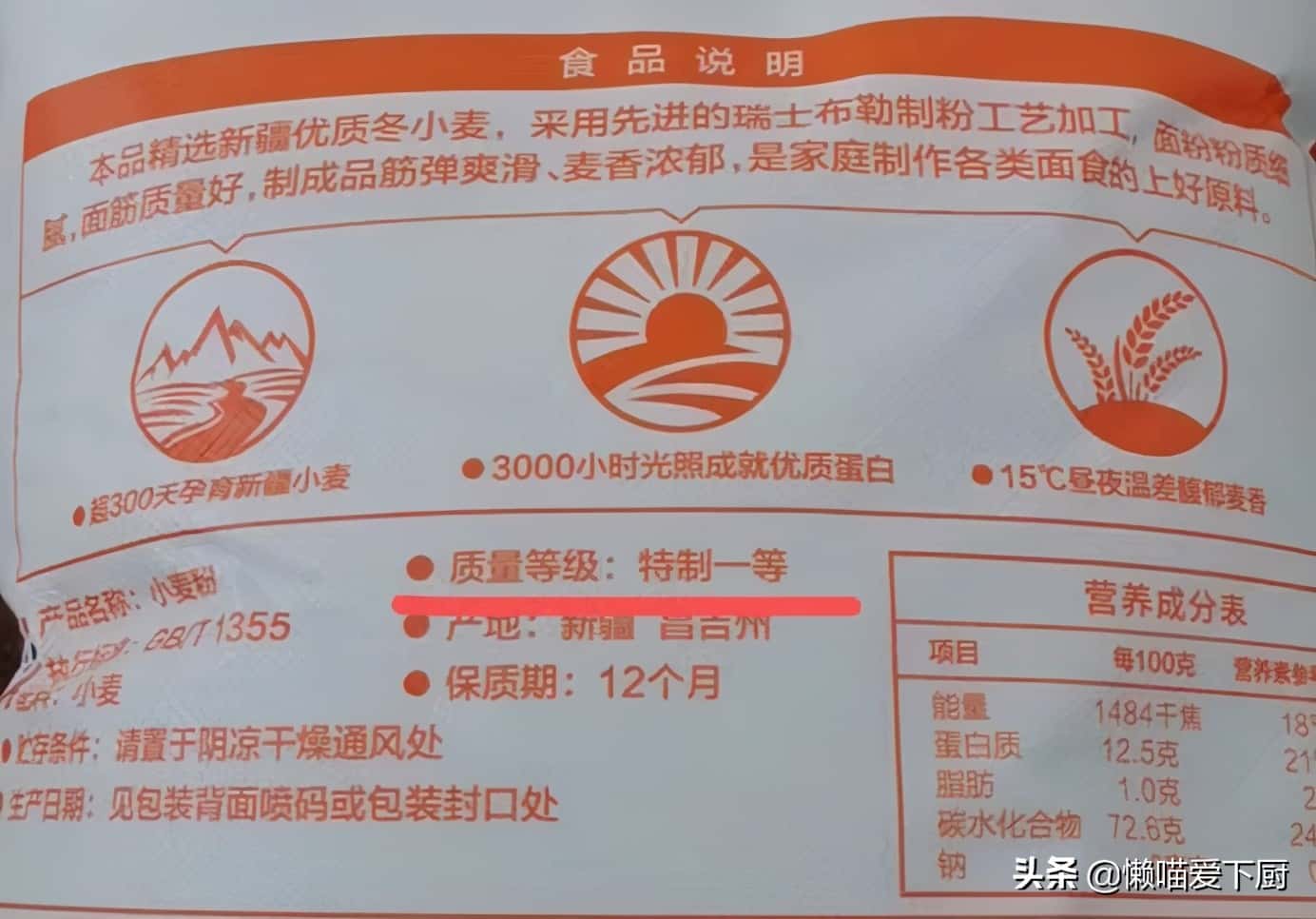 在选购面粉时,并不是价格越高,面粉品质就越好。因此,大家下次去超市买面粉时,可不要光盯着价格看,而是要重点关注面袋上的3行字,它们分别是面粉类型、面粉执行标准号和面粉等级。