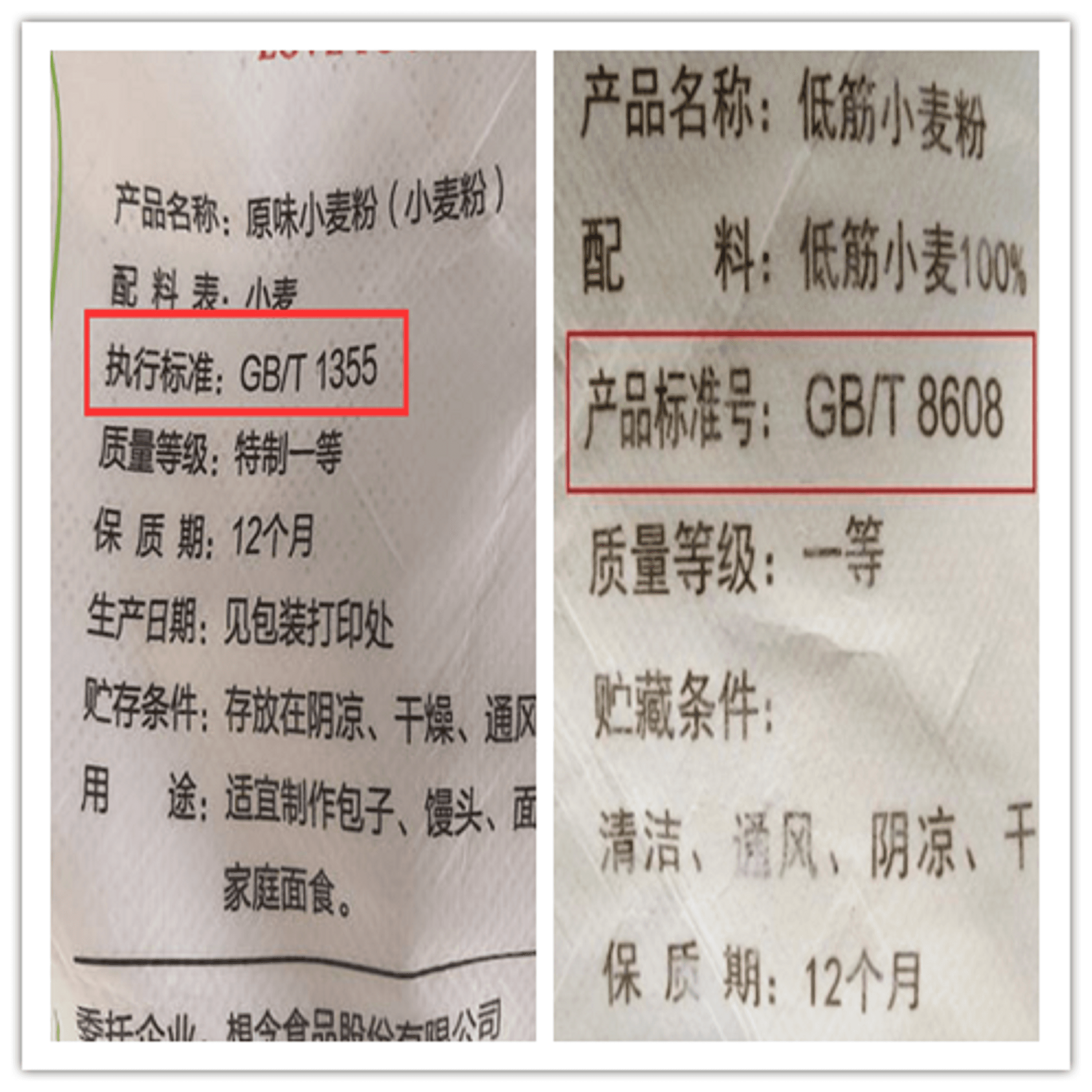 以上3种是正规且合格生产的低中高筋面粉对应的执行标准编号,如果您买的面粉不是以上的执行标准,一般可能都是不合格的面粉,除非您买的面粉是一些专用小麦面粉,也有LS/T3201开头的一些,除此之外大部分都符合以上3条编号,否则就是不合格的面粉哦。