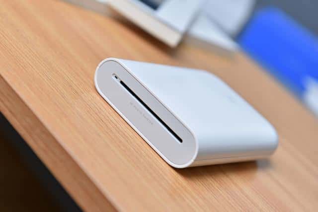 小米口袋打印机表面是高光质感,通体白色精致简约,是小米产品一贯的风格。值得一提的是,这款打印机体积小巧,基本与一款10000mAh充电宝相当,重量181g,随身携带也不是负担。