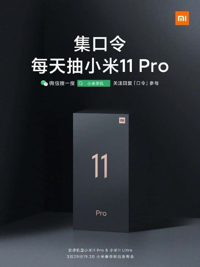 小米手机今天还推出了集口令送「安卓机皇」小米 11 Pro 活动,即日起参与活动,集齐「安」「卓」「机」「皇」四张口令,即可参与抽奖。图片中曝光了小米 11 Pro 的包装盒,预计和小米 11 包装盒一样,主打轻薄款,并且不再附带充电器。