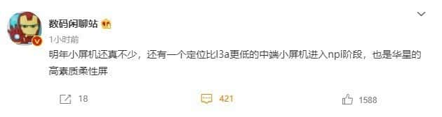 除了小米12X小米明年似乎还有新的小屏机推出,数码博主@数码闲聊站称,(小米)明年小屏机还真不少,还有一个定位比l3a更低的中端小屏机进入npi阶段,也是华星的高素质柔性屏。(npi阶段是指,工程样品验证测试评审阶段)