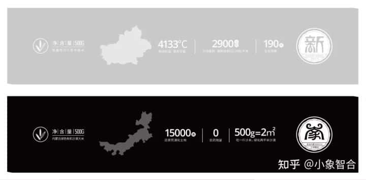 最后,整体的包装设计采取简洁的风格。侧面采用各地的特定颜色及地域轮廓元素、特色信息等,强调大米品质及地方特色。另外在产品名称文字图形、熊猫指南、大米轮廓等地方信息上采取烫金的工艺,让包装更具品质感。
