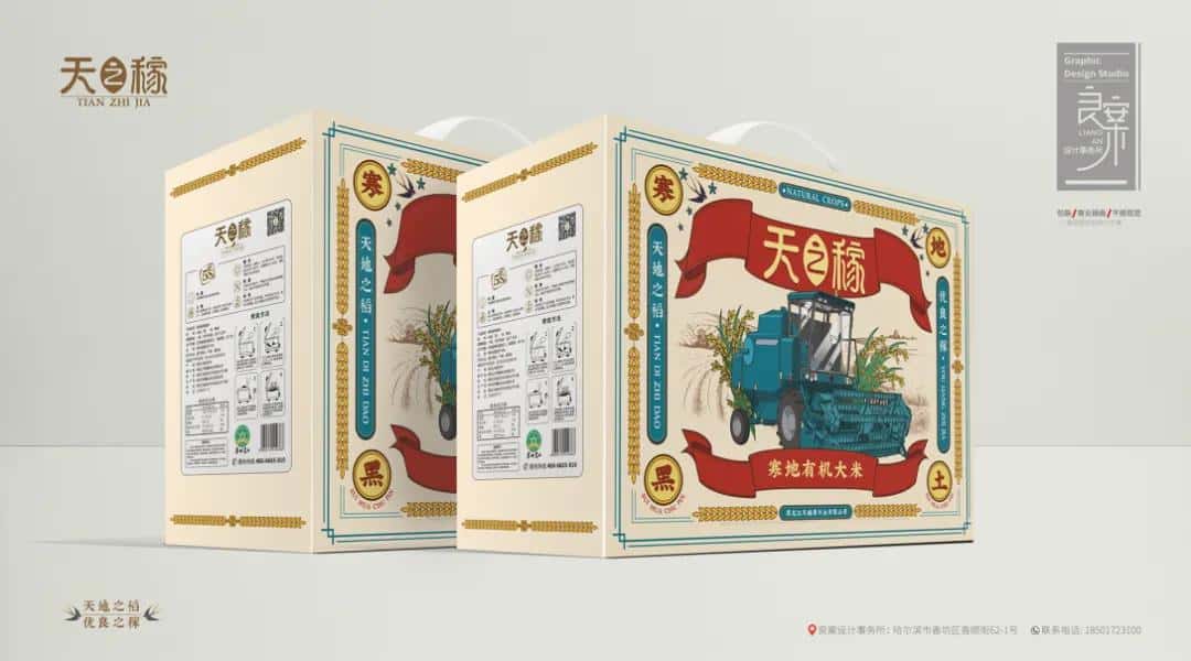 以“粮票”为包装设计灵感,“收割机”和“稻穗”为主要元素,描绘颇具旧时代农业生产特色的画面,唤醒用户的怀旧情怀。