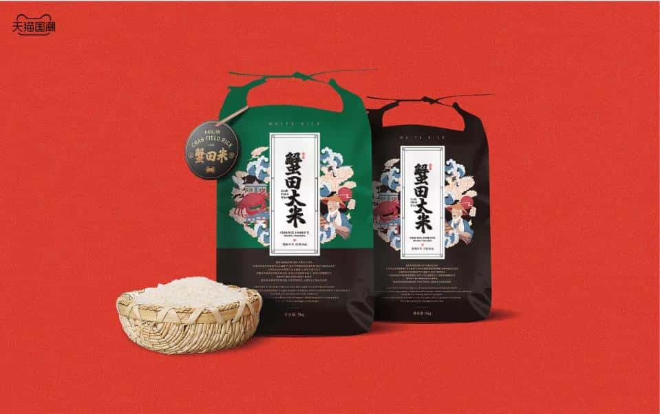 总的来看,以上的大米包装将国潮风插画融入到包装设计中,将真实的画面和情感表现出来去感染消费者。